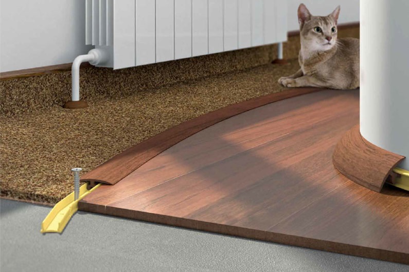 Такие пороги для линолеума могут быть пластмассовыми, резиновыми или металлическими. Этот способ более трудоемок по сравнению с первым.