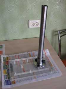 - Станина делается из оргстекла толщиной 20-30 мм, основание двухслойное. Нижний слой крепится к столу (верстаку), на верхнем предусматриваем место для установки пятки под колонну.