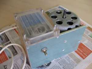 - Двигатель использован асинхронный, мощностью 60 Вт. Конденсаторный пусковой блок выполнен в отдельной коробке.