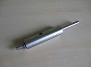 - Подпорная втулка изготовлена на токарном станке, и доработана на фрезерном. В задней части устанавливается маточная латунная гайка для регулировки вертикального положения каретки. Втулка фиксируется на колонне с помощью стопорного винта.