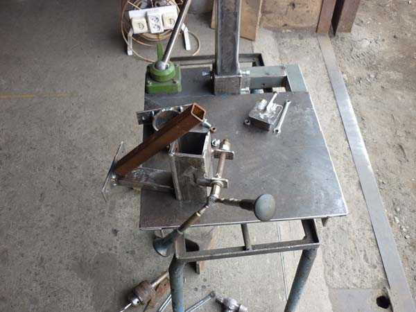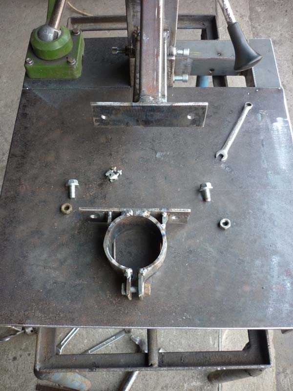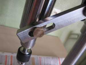 Все места соединения должны быть надежно закреплены, желательно при помощи сварки. Если используются направляющие, то нужно сделать так чтобы не было поперечного люфта. Для большего удобства такой станок можно оснастить тисками для фиксации заготовки под сверление.