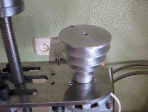 - Сверху надевается шкив с переменными диаметрами, для регулировки скорости вращения и крутящего момента.