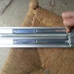 Похожий вариант, только крепится на деревянной основе. Саморезами прикрепляем мебельную направляющую. В доске делаем отверстия по диаметру дрели, крепим уголок и металлическую пластину. Всю конструкцию прикручиваем к направляющей. Затем крепим стальную пластину на платформе, делаем ручку и прикрепляем саморезами. Хомутами зажимаем дрель, фиксируем пружину. Возможно, немного путано, но по фотографиям разберетесь, ничего сложного.