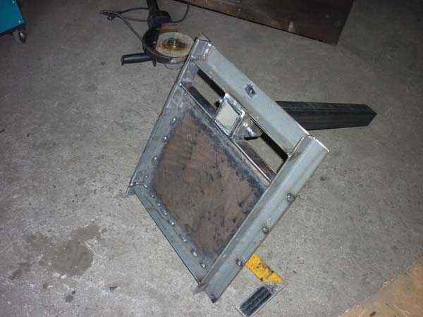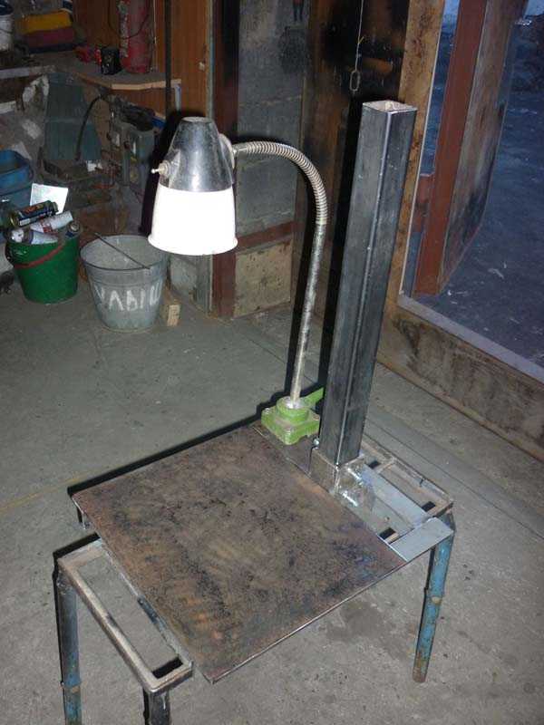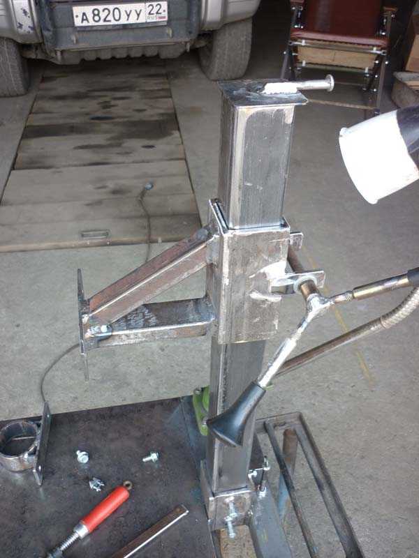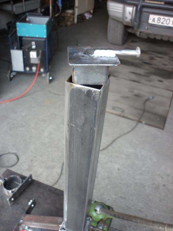 Стойка для подъемного механизма сделана из квадратной металлической трубы.