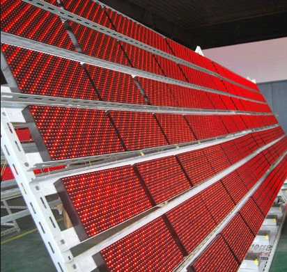 Процесс изготовления начинается со сборки металлического каркаса для размещения светодиодных блоков рядом друг с другом. Несущая металлоконструкция представляет собой нечто вроде стенки с ячейками. Как правило, её изготавливаются из квадратной профильной трубы или перфорированного металлического профиля. Учитывая особенности среды использования, материал должен иметь антикоррозионное покрытие. Пример традиционной конструкции для размещения модулей, источников питания, контроллеров, драйверов и других компонентов схемы представлен на следующем фото.
