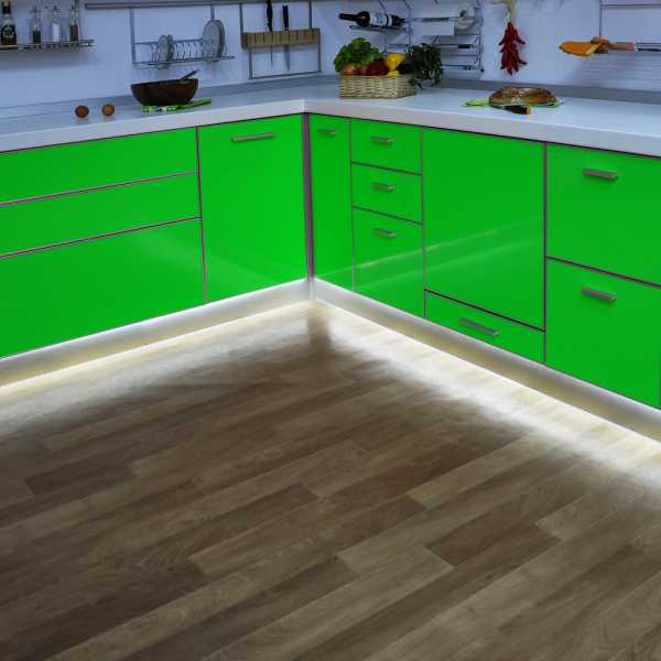 | Широкий выбор цветов | Кроме всех цветов радуги, для подсветки кухонных шкафов можно установить инфракрасные или ультрафиолетовые лампы. Последние будут дополнительно выполнять функцию обеззараживателя. |