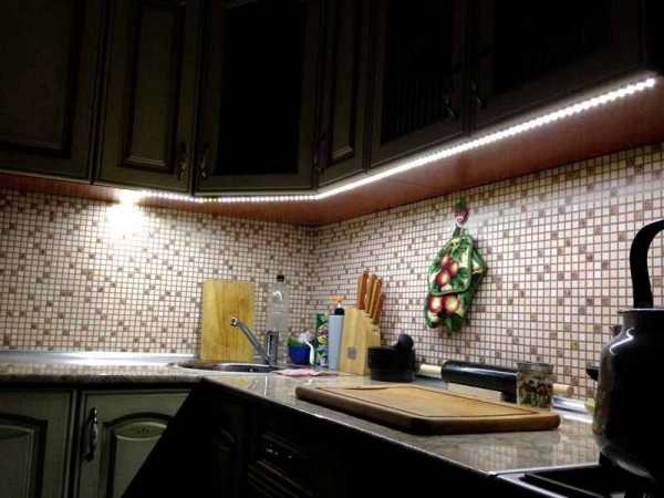 Светодиодная подсветка для кухни под шкафы: 8 вариантов расположения. Как сделать светодиодную подсветку на кухне под шкафами