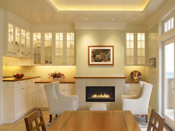 В таком случае свет не будет напрямую светить в глаза и при этом качественно и полно освещать поверхность рабочей зоныТакой световой сценарий позволит, кроме прочего, зонировать помещение, разделяя его на обеденную и рабочую часть.