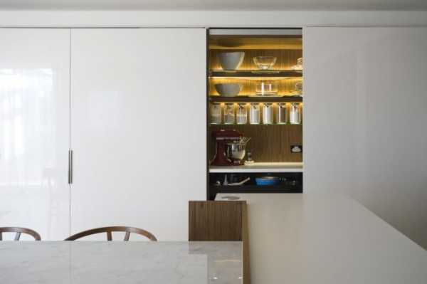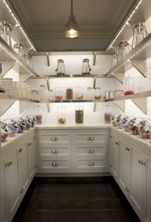 Светодиодные ленты по краю полок в этой кладовой выполняют роль основного освещения