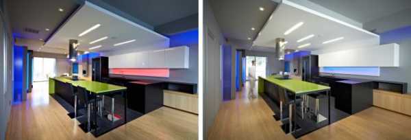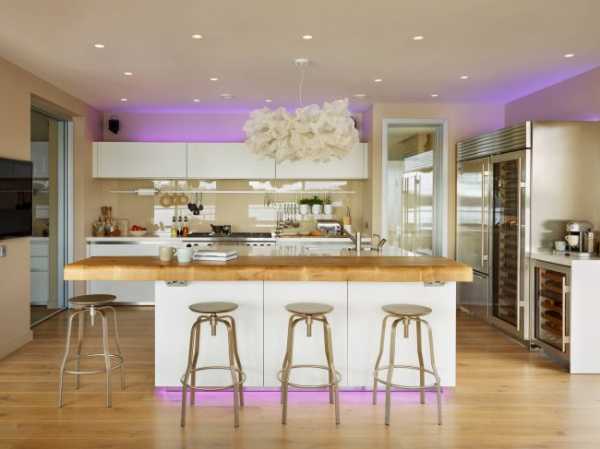Нейтральная белая подсветка поможет добиться идеальной конфигурации освещения рабочих зон, а декоративная цветная малой мощности создаст уникальное настроение в вечернее время суток
