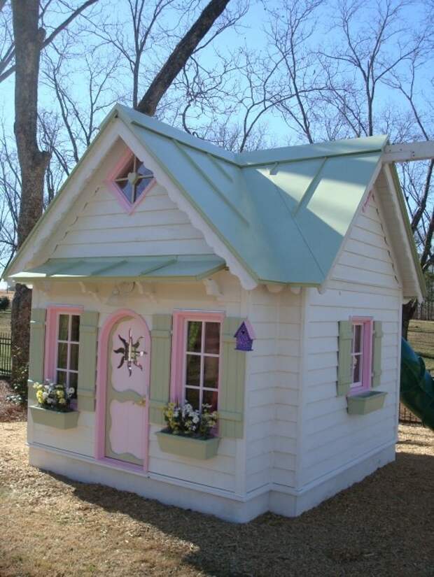 Деревянный игровой домик для детей, благодаря своей конструкции, можно укомплектовать множеством различных аксессуаров. Также пригодятся некоторые архитектурные детали коттеджа. Вот некоторые из них, заслуживающие внимания: Петух на крыше — очень дешевый и очень интересный способ развлечь детей.