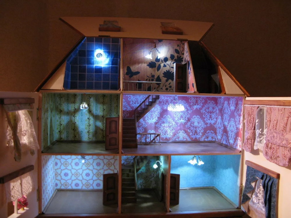 После высыхания шпатлевки раскрашивала домик акриловыми красками.