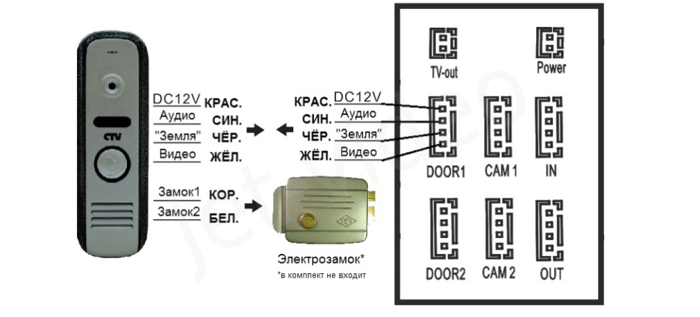 - Схема подключения. Подойдет стандартный экземпляр, который есть в любой упаковке домофона, изготовленного в заводских условиях.