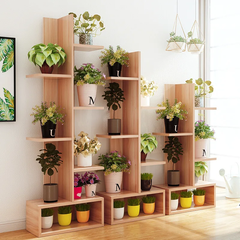 Изготовление этажерок займет больше времени, однако в таком случае разместятся растения в зависимости от светолюбивости и тяги к поливу. Удобны для малогабаритной квартиры, так как экономят пространство.