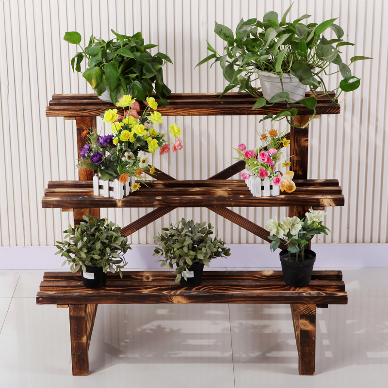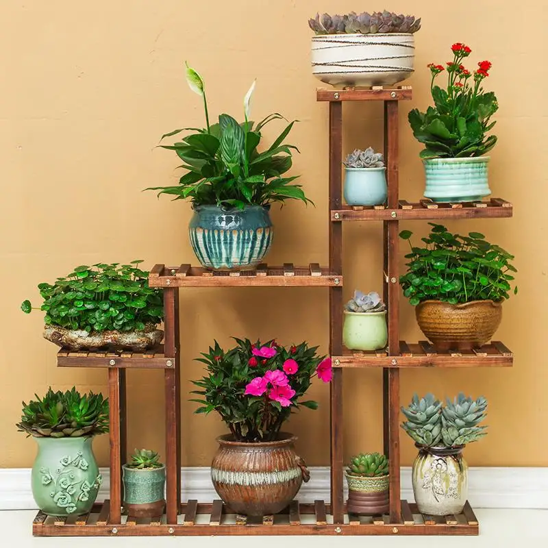 Она предлагает сделать три или четыре подставки на разной высоте. Чтобы защитить древесину от непогоды, покройте ее прозрачным покрытием или покрасьте в яркие цвета.