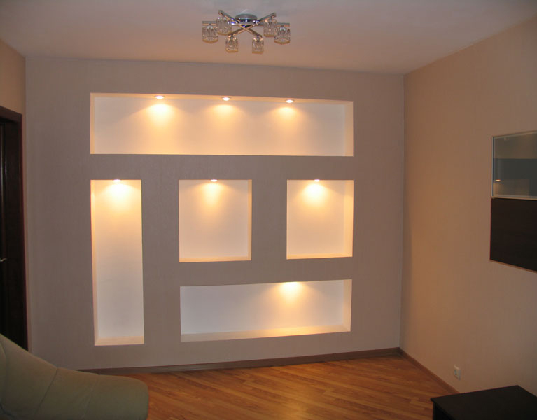 Велико разнообразие форм, фактур отделки, комбинаций, цветов. Все это делает гипсокартон прекрасным материалом для изготовления ниш, полок и других встроенных конструкций. В интернете можно увидеть фото, на которых показаны варианты гипсокартонных деталей с описанием работы.