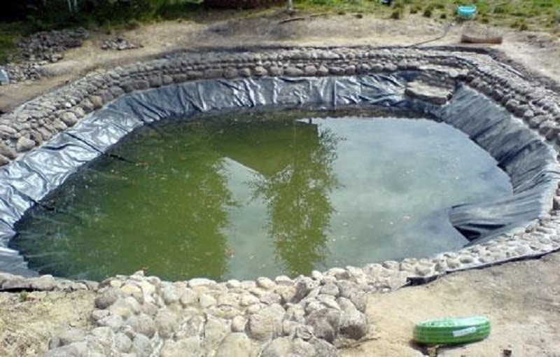 - Пруд, где в качестве гидроизоляции применяется ПВХ, бутилкаучуковая пленка.