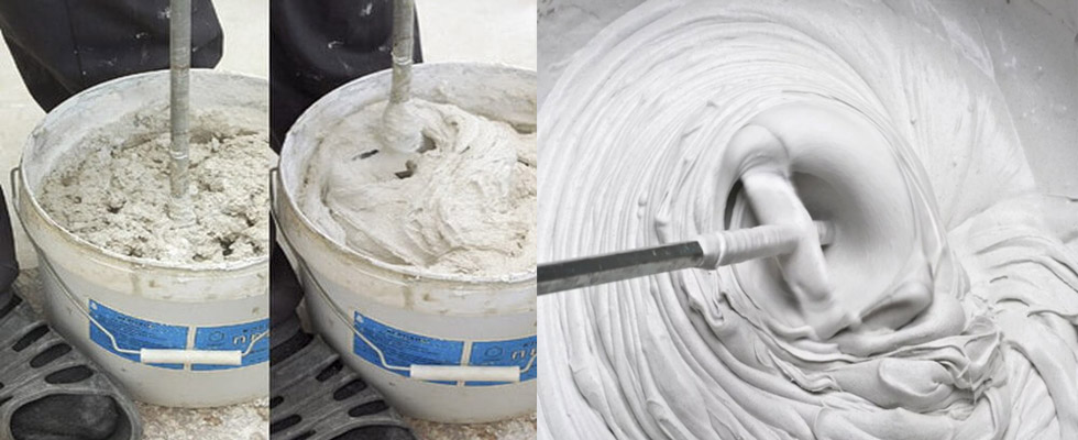 Для получения всех растворов необходимо смешать вяжущие компоненты друг с другом, а затем постепенно добавлять песок.