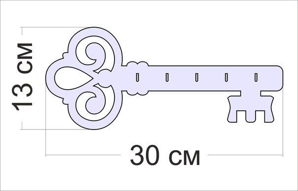 Вы можете вырезать из фанеры с помощью ручного лобзика деталь в форме ключа. Далее нужно сделать то на что будут вешаться ключи, это могут быть крючки, или небольшие мебельные шпильки, такие как изображены на фото. А можно и вовсе приклеить деревянные детали или элементы из фанеры, который возьмут на себя выполнение этой задачи.