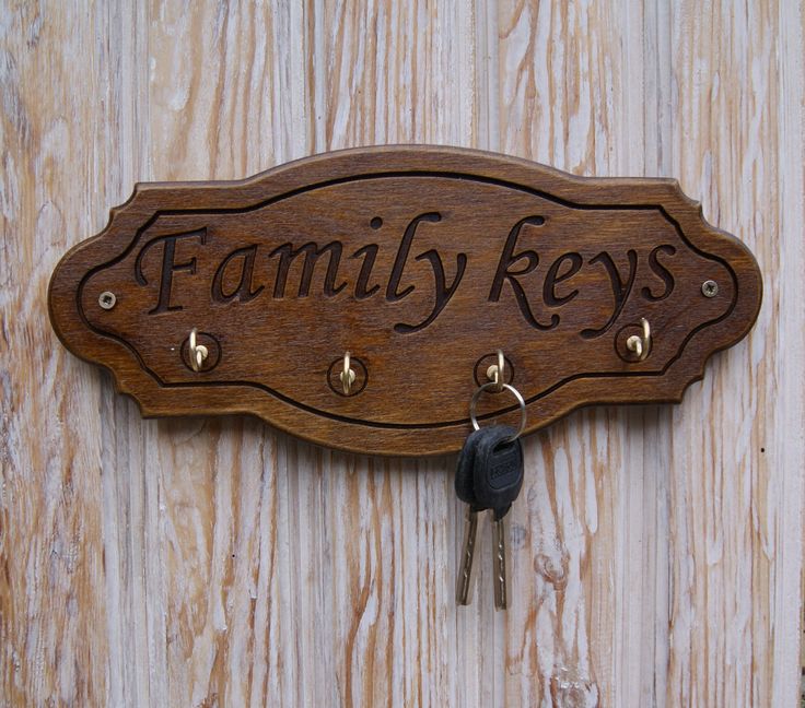 Добавьте несколько слов или другие мелкие детали и закончите крючками. Теперь у вас есть деревянная ключница для всех ваших брелоков и цепочек для ключей.