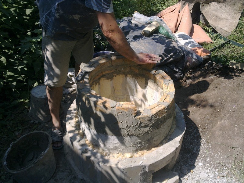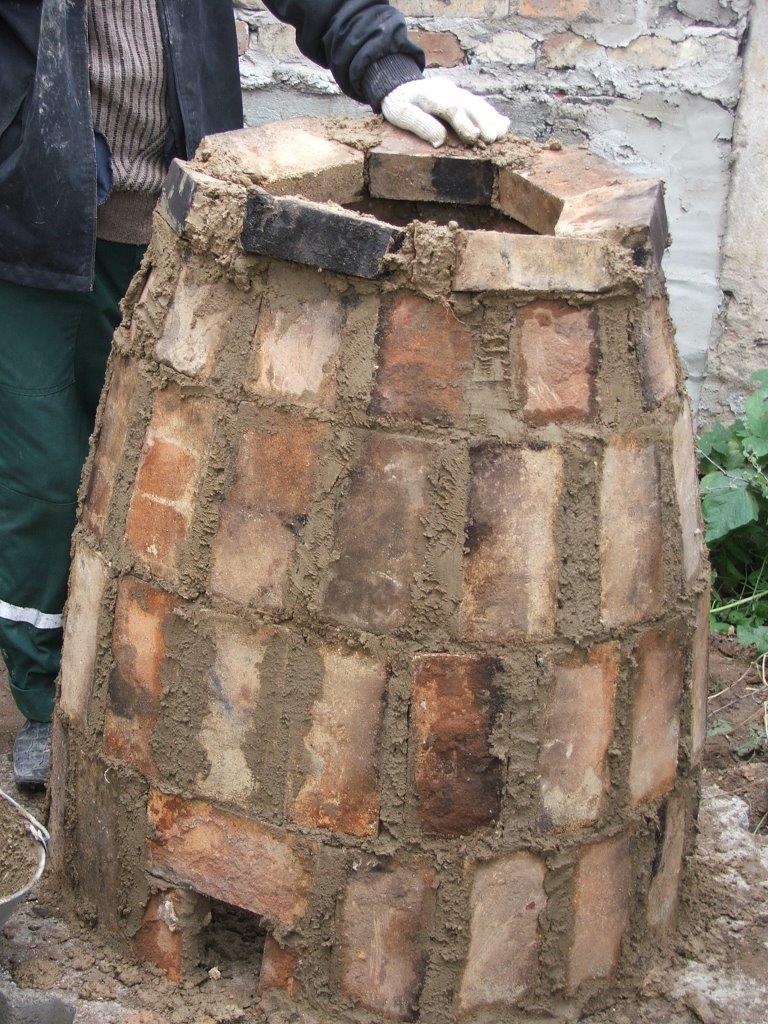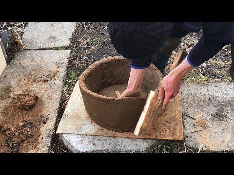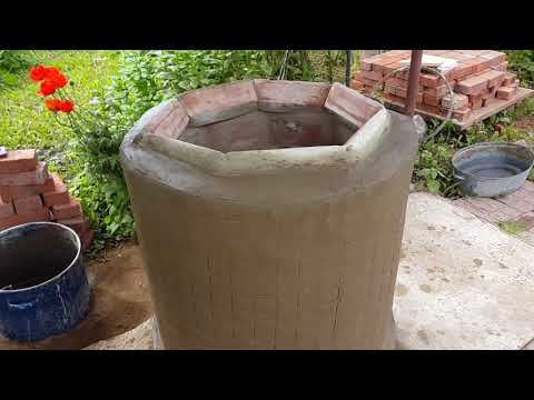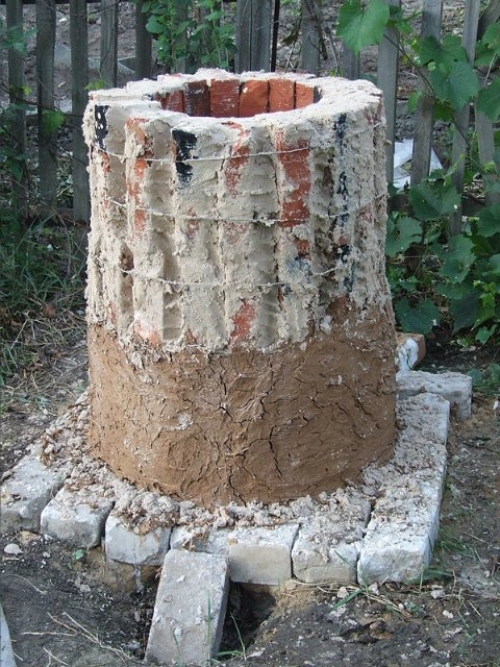 За это время глина просохнет, а основание в виде бочки начнет отслаиваться. Деревянные фрагменты нужно вынуть и выбросить – бочка больше непригодна для работы. Глиняную заготовку нужно укрепить на фундаменте, обжечь и провести финишную обработку.