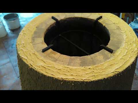 Одно отверстие на расстоянии 10 см от низа, второе – на 20 см. Нижнее отверстие будет формировать в дымоходе поддувало, верхнее – вытяжку. - Формирование основы тандыра – снизу выкладывают по одному ряду кирпичей. Для высоты 35 см это 5 рядов. Все щели замазывают огнеупорной глиной в один слой. Дают хорошо просохнуть 3-5 дней. Накрывать тандыр не рекомендуется.