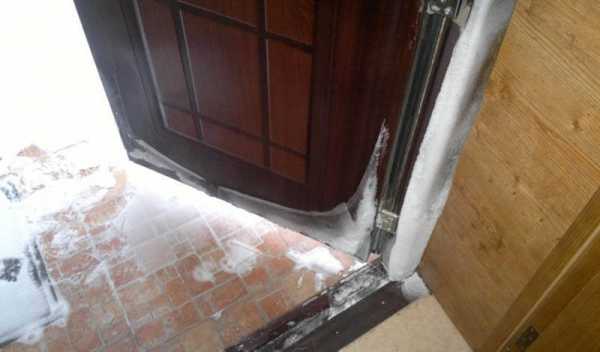 Все щели желательно заштукатурить монтажной пеной. Если вы решили установить новую дверь, то посмотрите можно ли сохранить старую, т.к. две входные двери создают воздушную прокладку между собой, и она изолирует тепло.