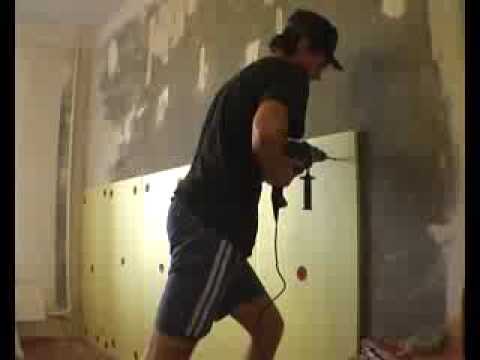 Срываем деревянный пол. Снизу деревянных лаг под полом закрепляем доски и щиты вразбежку, чтобы остались щели для проветривания.