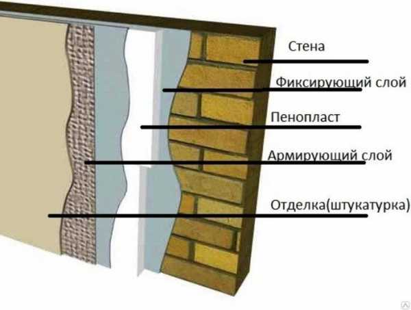 - Прикрепить на стену специальный теплоизолятор, используя клеящий раствор, а затем отделать ш