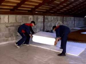 Укладка на слой гидроизоляции теплоизоляционного материала