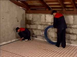 Для того, чтобы начать монтаж системы теплого водяного пола в частном жилище вам необходимо сначала подготовить поверхность. На ней необходимо провести работы по гидроизоляции, а затем разместить на ней монтажную сетку.