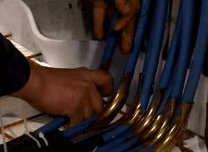 Вот таким образом выглядят контуры теплого водяного пола, подключенные к водяному распределительному коллектору.