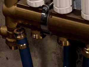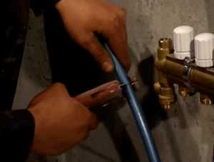Перед подключением трубы ее обрезают перпендикулярно, после чего соединяют с коллектором.