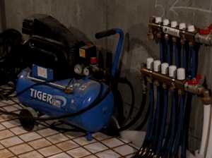 Если вы проводите монтаж теплого водяного пола в частном доме в зимнее время, то герметичность системы можно проверить при помощи компрессора и сжатого воздуха.