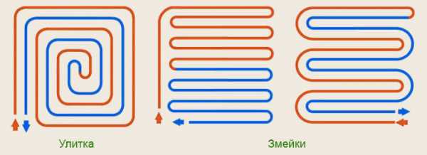 Контуры теплого водяного пола укладываются согласно выбранной схеме раскладки.