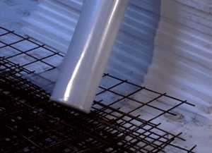 В качестве гидроизоляции для теплого пола можно использовать строительную пленку или специальную мембрану. В случае последней при укладке стоит быть внимательным, чтобы расположить ее требуемой стороной. В противном случае влага будет уходить не в том направлении. Арматурную сетку можно взять готовую металлическую или стекловолоконную. Если труба будет крепится к ней, то в зависимости от радиуса поворота трубы потребуется с леткой в 10 или 15 см.