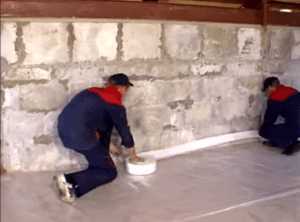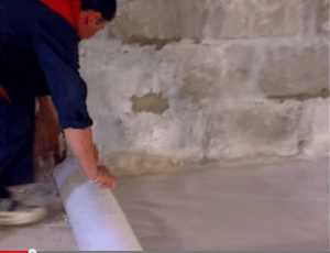 - Гидроизоляция. Укладка полиэтиленовой пленки с заходом на стены на толщину пола.