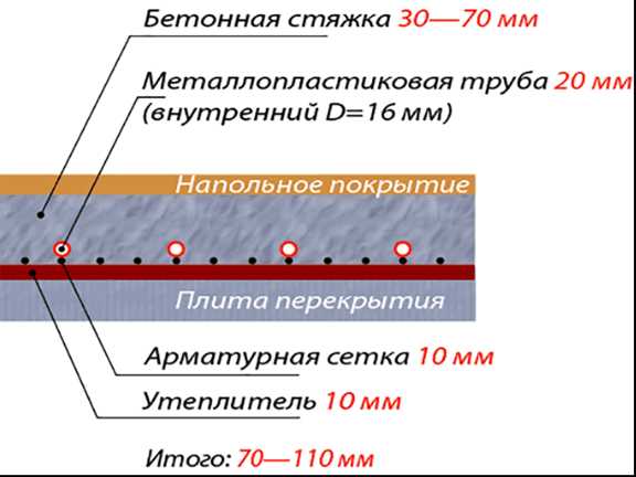 В толще теплого пола можно выделить обязательные функциональные прослойки: