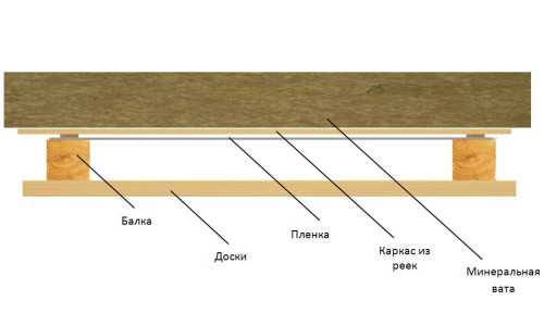 - В получившиеся ячейки укладываем минеральную вату. Фиксируем ее к потолку на клей (рис. 4).