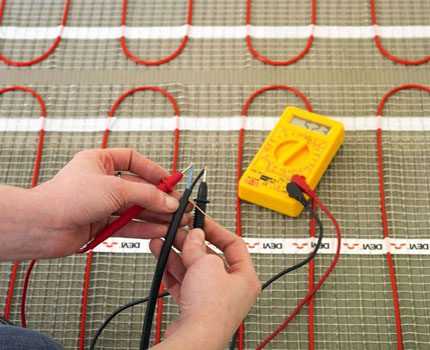 При укладке теплого пола сопротивление мата проверяется мультиметром. Допускается отклонение на 5-10% от заводских цифр. Также нужно проверить сопротивление изоляции. Если на мегаомметре не менее 10 Мом, мат надежный