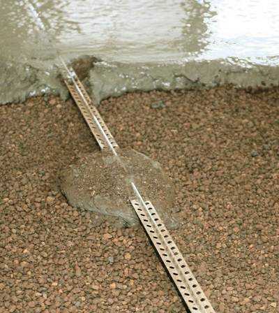Этап 7. Делаем вторую стяжку тем же раствором, что и черновую. Если в черновой стяжке допускались неровности до 5 мм, то сейчас предварительно устанавливаем рейки-маяки, чтобы идеально выравнять поверхность.