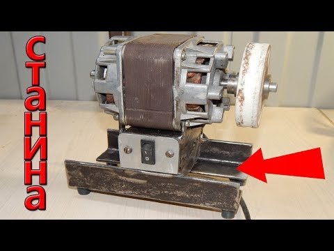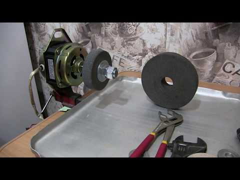Для сборки домашнего точильного станка потребуется главным образом рабочий мотор от стиральной машины. Можно взять от советской стиральной машины электромотор мощностью 200 Вт, например, от Риги-17 СМР-1,5. Хотя одни говорят, что оптимальная мощность 400 Вт, а другие – что при мощности более чем 300 Вт, точильный круг может разлететься на куски. Для редкого использования точильного станка достаточно мотора в 1000 оборотов в минуту.