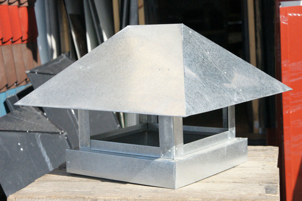 На скатную крышу в дымоходе устанавливается зонт для защиты люков крыши от атмосферных осадков.
