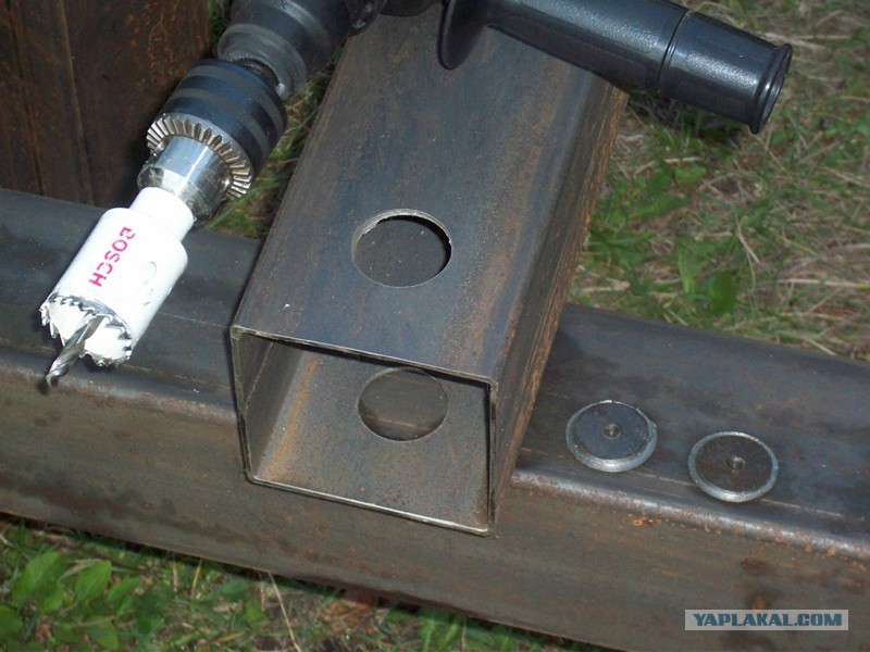К этой же конструкции можно прикрепить две металлические планки, образующие собой нечто вроде крюков. В эти крюки можно класть штангу.