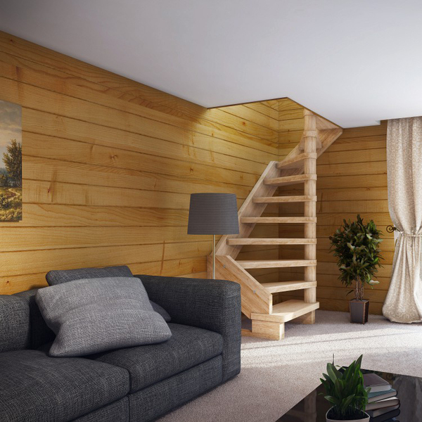 Такая конструкция менее удобная и комфортная, чем маршевая, однако, в отличии от нее, безопасный угол наклона может составлять вплоть до 70-75 градусов. При этом передвижение по ней будет безопасным, а для монтажа понадобится всего пара квадратных метров.