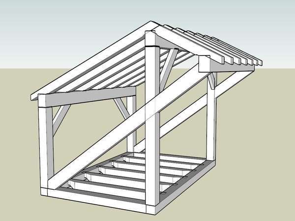Крепление стропил к угловому навесу