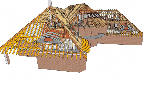 Это стропила на фронтонах, стропила на изломе конька и стропила во внутреннем углу коробки дома с противоположными им.