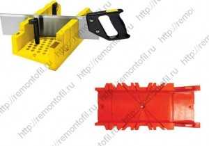 Самые простые из них напоминают прямоугольный лоток с прорезями, позволяющими отрезать то, что будет в них установлено, под 900 или 450. Более сложные профессиональные приспособления дают возможность отрезать плинтус под любым углом в двух плоскостях. Учитывая габариты и цену, приобретать такое устройство для проведения одного единственного ремонта нецелесообразно. Поэтому лучше воспользоваться тем, что проще, или вовсе обойтись без него. Как это сделать — сейчас научим.