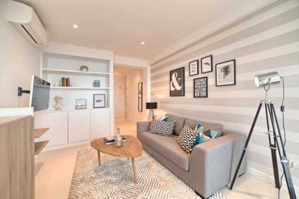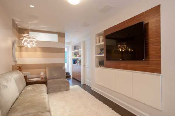 - Покрытие стен также поможет расширить узкую комнату. Смело используйте горизонтальную полоску на торцевых поверхностях. Широкие полосы и умело подобранные цвета помогут усилить эффект расширения.