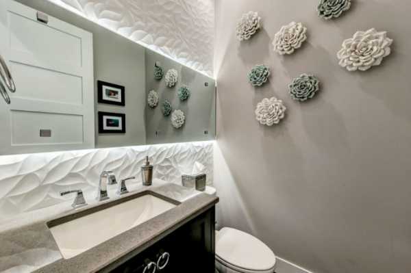Следует отметить, что применение светлых цветов поможет в помещении, имеющем площадь больше восьми квадратных метров. Если комната меньше, то при использовании слишком светлых, холодных тонов она станет напоминать больничную палату или общественный туалет. В этом случае лучше применить другие оптические приемы: установка фрески или фотообоев, укладка мозаики светлых, холодных тонов. Например, синяя расцветка поможет создать эффект отдаления предметов, а значит визуально расширит пространство. А вот оранжевый теплый, наоборот, акцентирует внимание на предметах, а значит сделает комнату уже.